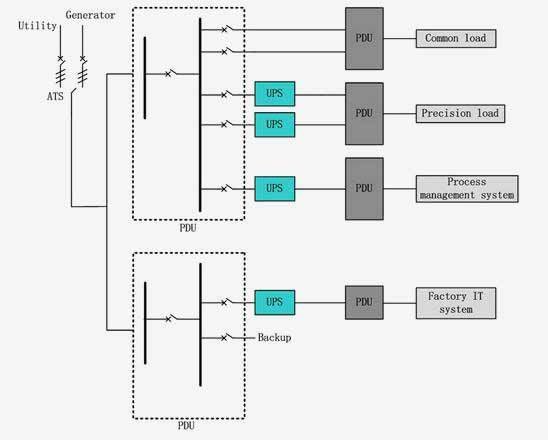 En comparación con el centro de datos grande, la estructura del centro de datos mediano y pequeño es similar. La mayoría de los equipos son también cargas críticas y requieren una fiabilidad muy alta.